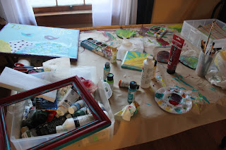 Paint squirted everywhere and brush to form something that only existed in my mind before....that my friends is therapy to me.